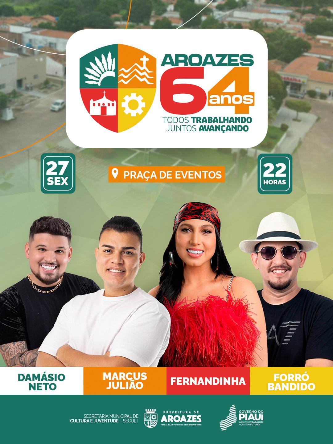 A Prefeitura de Aroazes já deu início à programação comemorativa pelos 64 anos de emancipação política do município. Desde o dia 20, a cidade vem realizando intensas atividades esportivas, culto e segue, nesta quarta-feira (26), com a celebração de Missa em Ação de Graças.