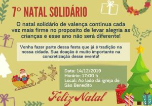 Será dia 16 de dezembro, a 5ª Edição do Natal Solidário em Valença do Piauí. O evento que conta com o apoio da Igreja Católica será realizado as 17h no patamar da Igreja de São Benedito.