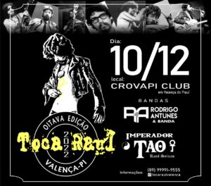 Será neste sábado, 14 de julho, a 7ª Edição do Toca Raul Valença que será realizado no Crovapi Clube a partir das 22h. O tributo anual que reúne fãs do Maluco Beleza.
