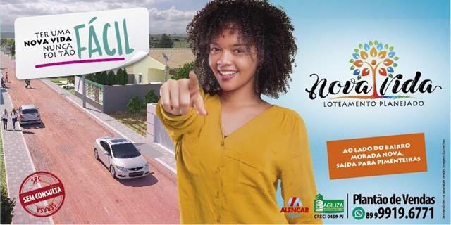 Ter uma NOVA VIDA agora é possível, são terrenos totalmente documentados, com infraestrutura, sem burocracia, sem consulta ao SPC/SERASA, venha ter uma NOVA VIDA a partir de R$ 57,47 mensais, visite nosso plantão de vendas dentro do loteamento na saída para Pimenteiras.