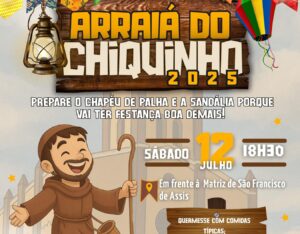 A Paróquia de São Francisco de Assis de Valença do Piauí vai realizar no próximo sábado (13), o Arraiá do Chiquinho 2024. A festa junina vai acontecer ao lado da igreja matriz a partir das 19h.