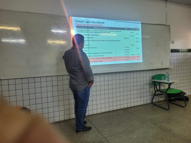 Já o Gerente do PRONAF, Chagas Leal, apresentou as diversas linhas de crédito disponíveis no Banco do Nordeste voltadas aos pequenos e médios produtores, ressaltando a importância do acesso ao financiamento para ampliar a produção e gerar renda nas comunidades rurais.