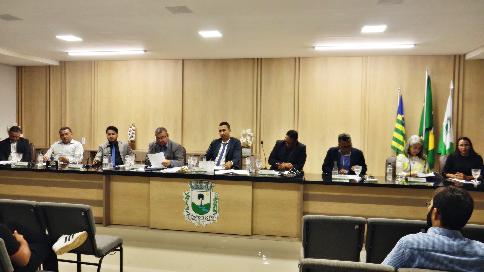 A Câmara Municipal de Vereadores de Novo Oriente abriu oficialmente nesta segunda-feira (24), os trabalhos legislativos do primeiro semestre com uma Sessão Ordinária realizada com a presença dos 09 parlamentares novoorientinos. A sessão foi conduzida pelo presidente da Câmara, Toi Velho, e secretariada pelo vereador Nonato do PT.