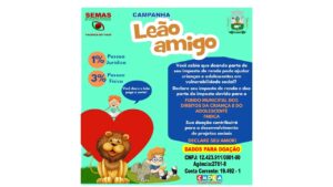 A Secretaria Municipal de Assistência Social e o Conselho Municipal dos Direitos da Criança e do Adolescente (CMDCA) de Lagoa do Sitio lançaram nesta quinta-feira (14), a Campanha Leão Amigo da Criança que incentiva contribuinte a destinar parte do Imposto de renda a projetos e programas sociais em Lagoa do Sitio.