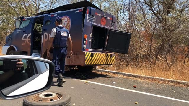 Assaltantes fortemente armados explodiram um carro-forte na manhã desta quinta-feira (16), na BR 230 na cidade de Oeiras. As informações dão conta que o carro forte estava chegando a Oeiras, para abastecer as agências bancárias, quando na altura da localidade conhecida como Café de Rosa foi alvejado pelos homens que estavam em três carros, uma L 200, SWD 4 e um Fiat Toro.