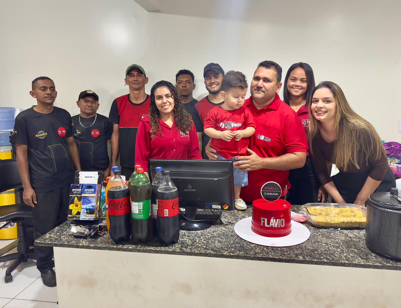 Com sorrisos e gratidão, equipe da FJ Pneus celebra aniversário de Flávio Martins