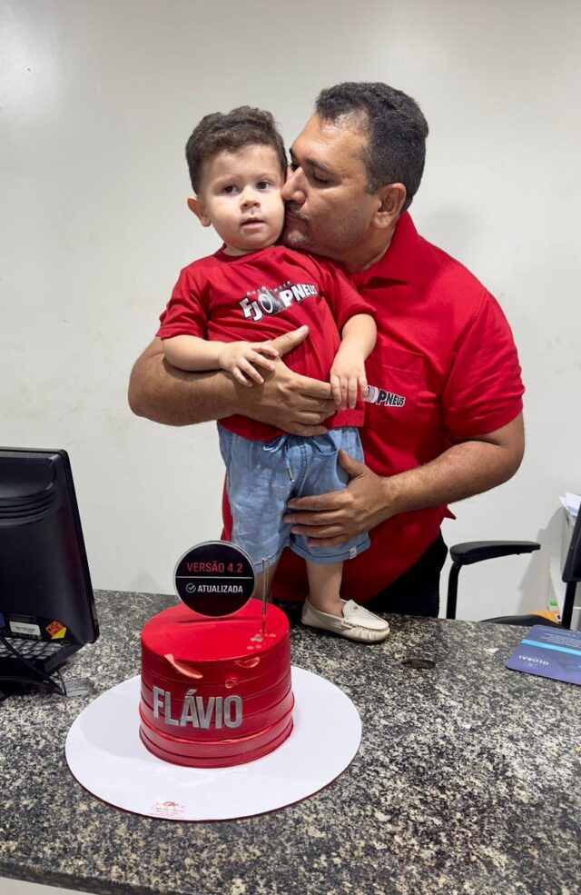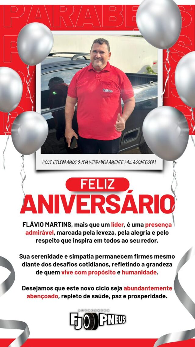 O empresário Flávio Martins, proprietário da empresa FJ Pneus Autocenter, foi homenageado neste sábado (28) com uma comemoração especial organizada por funcionários e familiares. O encontro foi marcado por sorrisos, palavras de gratidão e muitos votos de felicidades e saúde.