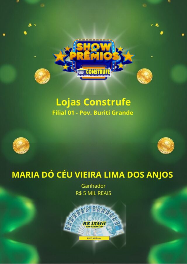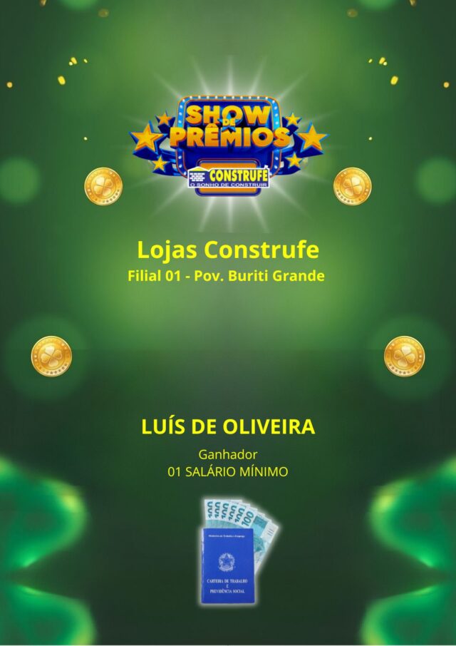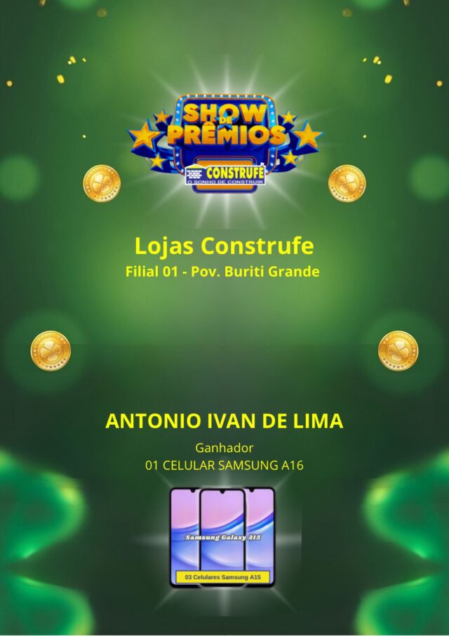 A campanha de 2025 distribuiu 24 super prêmios, incluindo geladeiras, televisores, celulares, tablets, caixas d’água, sacos de cimento e premiações em dinheiro, com destaque para R$ 15 mil divididos em três sorteios, além de três salários mínimos, reforçando o compromisso da Construfé com seus clientes.