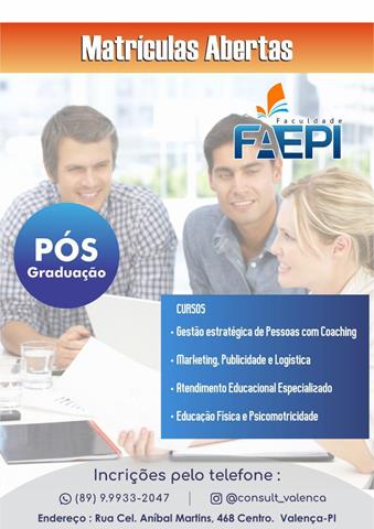 A Faculdade FAEPI, que está com vagas para Gestão Estratégica de Pessoas com Coaching, Marketing em Publicidade e Logística, Atendimento Educacional Especializado, Educação Física e Psicomotricidade.
