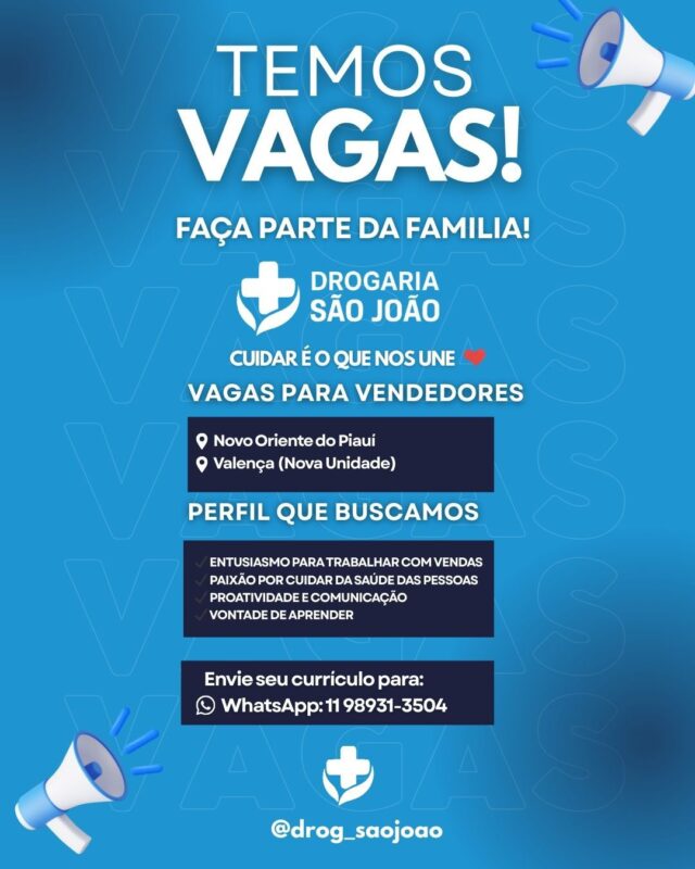 Drogaria São João anuncia chegada a Valença do Piauí e abre vagas de emprego