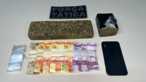 Ao abordar a dupla, que estava em uma motocicleta, os policiais encontraram, durante a busca pessoal, drogas análogas à cocaína já preparadas para venda, balança de precisão e dinheiro. Um dos abordados saiu do sistema prisional no mês de maio, onde estava preso por tráfico de drogas.