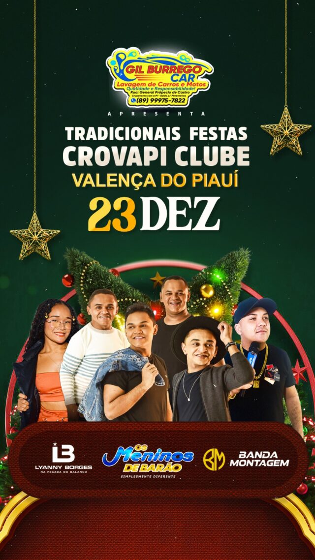 A noite desta terça-feira, 23 de dezembro, promete muita animação em Valença do Piauí com a realização de uma das festas mais esperadas dos festejos de Valença. O evento acontece no Crovapi Clube e deve reunir um grande público para celebrar ao som de atrações que vêm agitando o público.