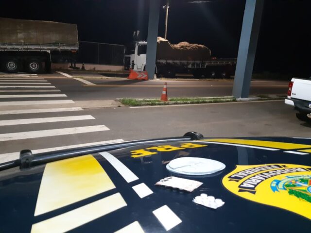 Já durante a abordagem ao veículo de carga Vw/24.250 Cnc 6×2, ao realizarem busca pessoal e veicular foram encontrados 13 comprimidos de Nobésio Extra Forte em posse do condutor.