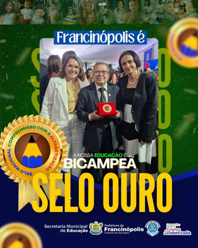 O município de Francinópolis conquistou, pelo segundo ano consecutivo, o Selo Ouro do Compromisso Nacional Criança Alfabetizada, iniciativa do Ministério da Educação que reconhece os esforços das redes municipais de ensino na garantia da alfabetização das crianças na idade adequada.