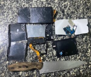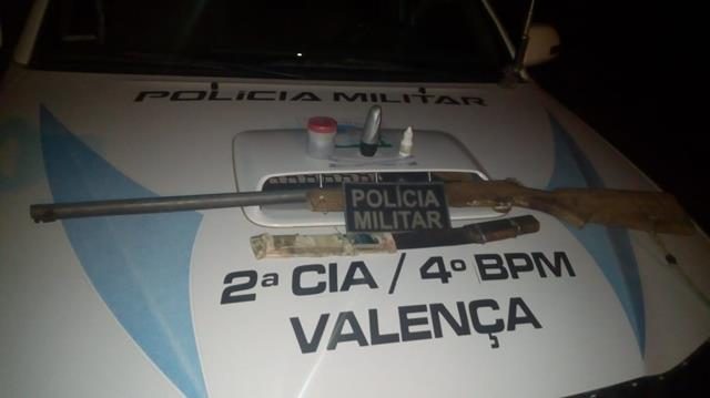 Ao retornarem à casa do acusado, a polícia apreendeu uma espingarda bate bucha e um facão de 36 polegadas. Ainda segundo o comandante, as diligências continuam no sentido de localizar e prender o acusado. O armamento apreendido foi apresentado na delegacia regional de Valença.