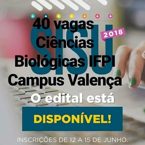 O Campus do Instituto Federal do Piauí de Valença estar disponibilizando novas vagas para o Sistema de Seleção Unificada (SISU) 2018.2. Saiba mais clicando aqui