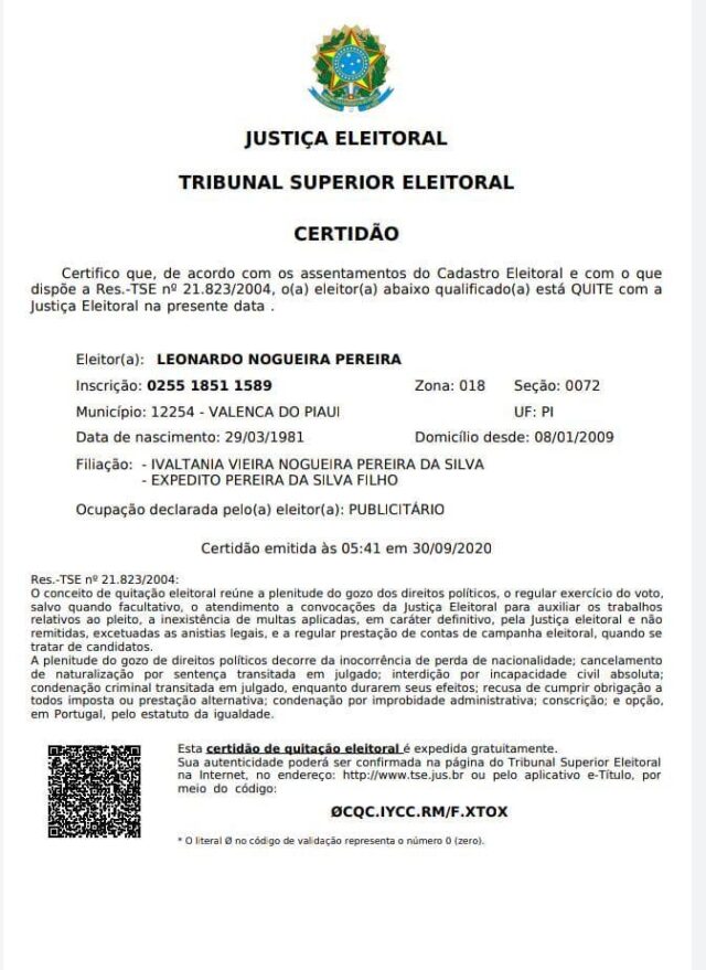 Leonardo Nogueira disse ao Portal V1 que não tinha conhecimento do pedido de impugnação por parte do MPE, ele sabia por redes sociais do pedido feito pela coligação Juntos pela Mudança. “Uma coisa que a gente tem certeza é que todas as certidões eleitorais saíram e que eu estou quite e apto com a Justiça Eleitoral para ser candidato”, disse Leonardo Nogueira, que enviou uma certidão do TSE.
