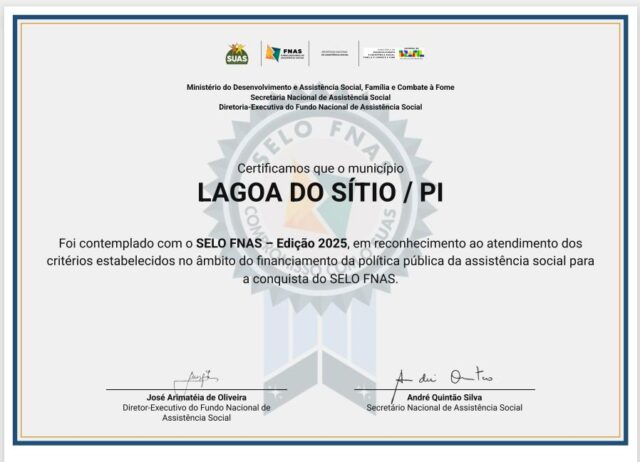 O município de Lagoa do Sítio, no Piauí, encerrou a semana com duas importantes conquistas em nível nacional, reforçando o destaque da gestão municipal nas áreas de educação e assistência social.