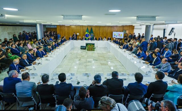 O presidente Luiz Inácio Lula da Silva (PT) liderou nesta terça-feira (18) reunião no Palácio do Planalto com ministros de estado, ministros do STF (Supremo Tribunal Federal), parlamentares, governadores e secretários de Educação para anunciar um pacote de ações integradas para prevenir violência nas escolas.
