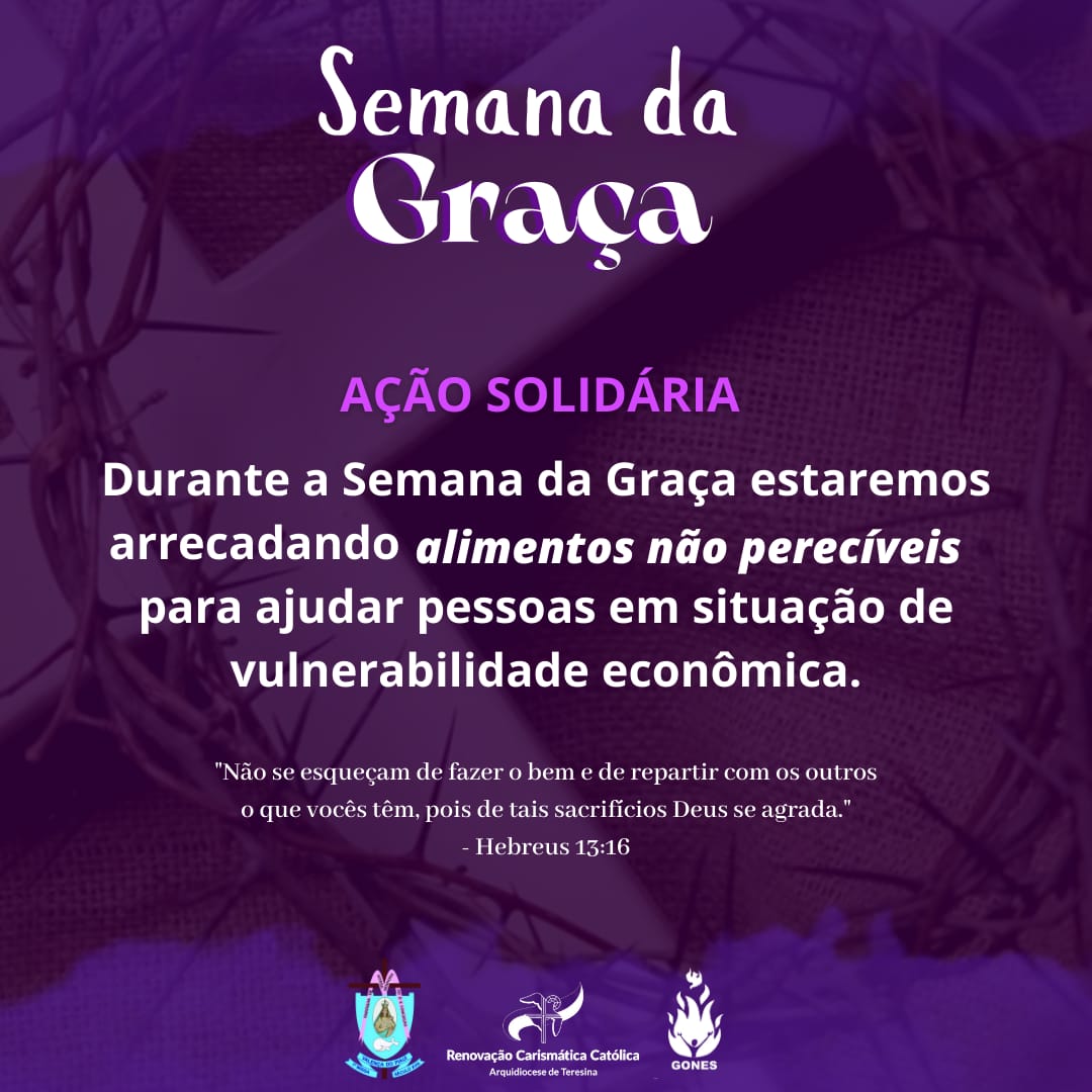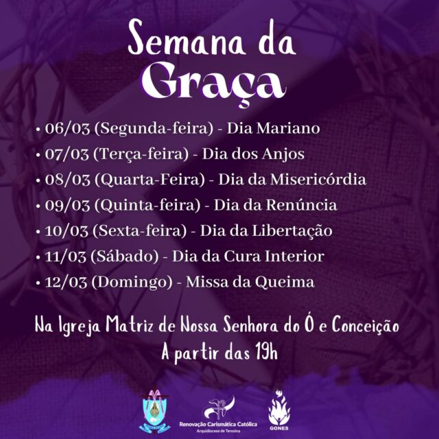 A Matriz de Nossa Senhora do Ó e Conceição realiza de 6 a 12 de fevereiro “A Semana da Graça”. A programação começa sempre às 19h sempre com abordagens variadas. Durante toda a semana haverá arrecadação de alimentos não perecíveis para ajudar as pessoas em situação de vulnerabilidade econômica.