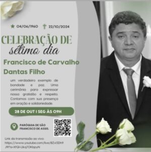 Aconteceu nesta quinta-feira, 11 de setembro, a missa de sétimo dia em memória de Francisco de Assis e Silva, conhecido carinhosamente como Xinxa, de 78 anos. A celebração religiosa foi realizada na Igreja de São Francisco, no bairro Cohab, e reuniu familiares, amigos e conhecidos que prestaram suas homenagens.