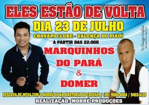 A banca com direito a 04 pessoas custará R$ 100 reais. Para maiores informações, os interessados devem ligar 89 9984-4054 ou 89 9403-5126 falar com Morré. Clique e tenha um aperitivo do show.