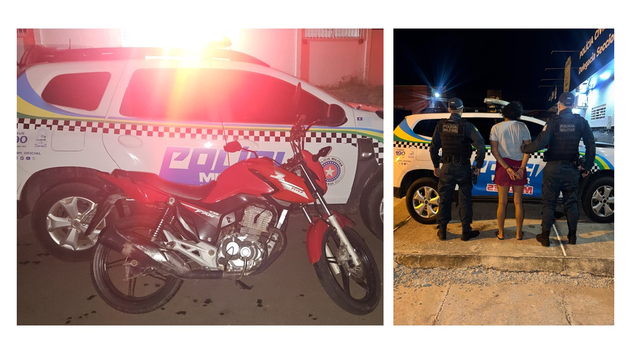 Uma mulher foi presa na noite deste domingo (12) suspeita de furtar uma motocicleta no município de Elesbão Veloso. O veículo foi recuperado pela Polícia Militar pouco tempo após o crime.
