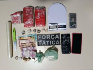Devido a isso, os policiais militares foram até a casa de E.S.S, onde encontraram dinheiro, embalagens e relógios que supostamente usuários trocaram por drogas.