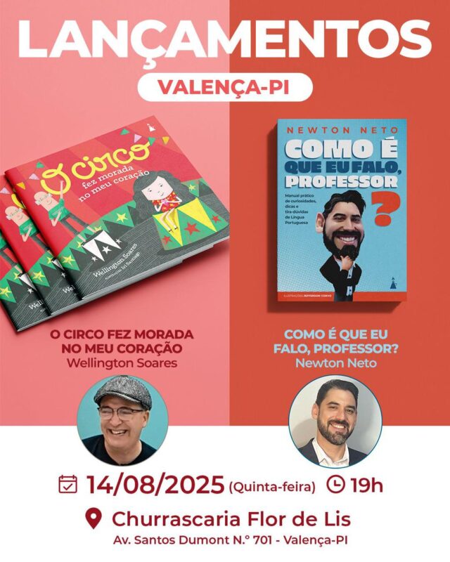 A Churrascaria Flor de Liz, em Valença do Piauí, será o cenário de uma noite especial nesta quinta-feira (14), a partir das 19h, com o lançamento de duas obras literárias que prometem encantar e instruir o público. Os livros são de autoria dos professores e escritores Wellington Soares e Newton Neto, nomes já conhecidos no cenário cultural piauiense.