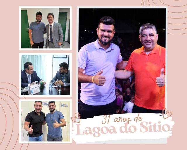 A cidade de Lagoa do Sítio completa nesse domingo (26), 31 anos de emancipação política, e nesse sábado o Sávio Moura usou as redes sociais para anunciar novas obras e investimentos para o município. Os presentes foram dados pelos deputados Átila Filho e Severo Eulálio e pelo senador Ciro Nogueira.