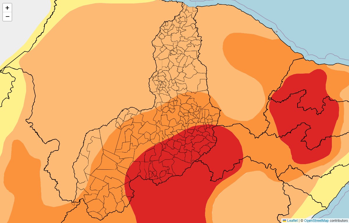 No monitoramento de dezembro, 56 municípios do Piauí estavam em situação de seca extrema, estágio em que há grandes perdas de culturas e pastagens, além de escassez generalizada de água ou restrições severas.