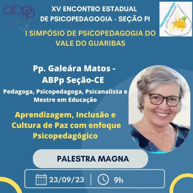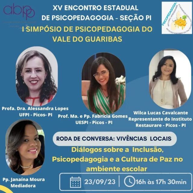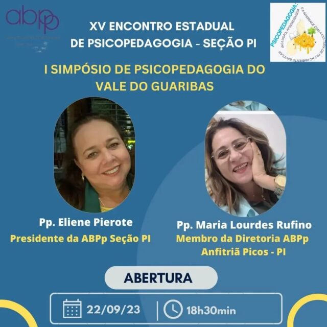 A Associação Brasileira de Psicopedagogia, vai realizar nos dias 22 e 23 de setembro, o XV Encontro Estadual de Psicopedagogia – Seção Piauí e o I Simpósio de Psicopedagogia do Vale do Guaribas, que acontecerá este ano na cidade de Picos. O evento vai acontecer no auditório da Universidade Federal do Piauí e traz como tema central, “Psicopedagogia: inclusão, aprendizagem e a interface com a cultura de paz no ambiente escolar”.