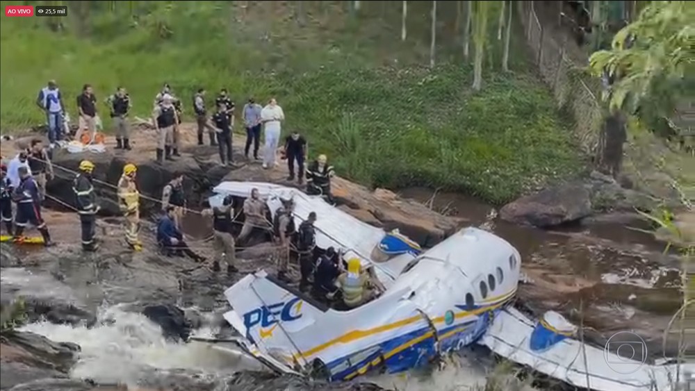 O avião, um bimotor King Air da Beech Aircraft, fabricado em 1984, decolou de Goiânia e caiu em uma cachoeira a 2 km da pista onde faria o pouso, segundo informou a Polícia Militar mineira.