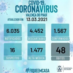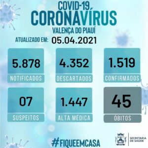 Pimenteiras contabiliza até o momento 925 casos confirmados de covid-19, 834 pessoas já receberam alta médica, 65 estão em tratamento domiciliar, 02 estão internados e 24 vieram a óbito no município.