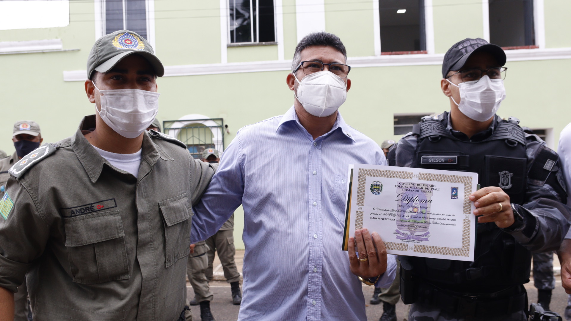 O empresário Antônio Elton recebeu nesta sexta-feira 25 de março, da 2ª Companhia da Polícia Militar de Valença do Piauí, o certificado “Amigo da Polícia Militar”. Junto com ele, foram homenageados os empresários Geovane Vieira e Francélio Poti, representado pela esposa Ivanilde Lima, além do prefeito Marcelo Costa.