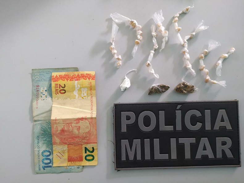 Ainda de acordo com a Policia Militar, no momento da abordagem aos dois, foi visualizado sobre um celular uma quantidade de substância análoga à cocaína. Diante disso, o adolescente informou que havia mais droga dentro de sua carteira e bolsos da sua roupa.
