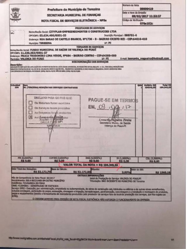 A vereadora Iris Moreira, de Valença do Piauí, deverá representar criminalmente, nesta terça-feira (21/11), junto ao Ministério Público Federal, a prefeita do município, Maria Conceição Dias, que é acusada de pagar R$ 104.345,59 pela reforma de um posto de saúde, sem que a obra seja realizada.
