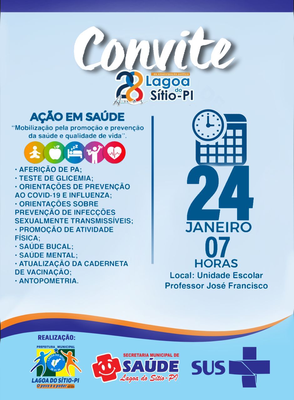 Prefeitura de Lagoa do Sítio realizará dia 24 o projeto Ação em Saúde