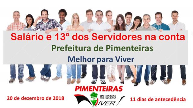 A Prefeitura de Pimenteiras disponibilizou desde ontem (2o), o pagamento de todos os servidores referente ao mês de dezembro, assim como concluiu o pagamento do 13ª salário.
