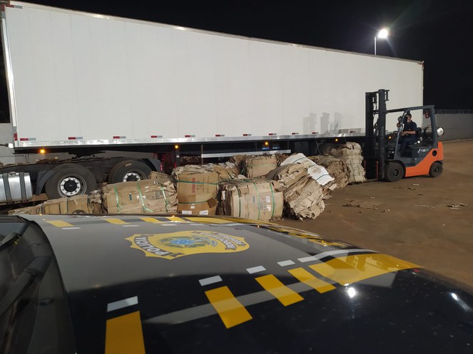 Os policiais estavam realizando fiscalização na região quando abordaram um veículo de carga que vinha do Pará e era conduzido por um homem de 34 anos. De acordo com a documentação fiscal da carga apresentada, o caminhão baú estaria transportando um carregamento de papelão.