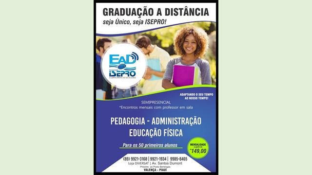 A Faculdade Isepro está com matriculas abertas para os cursos de Pedagogia, Administração e Educação Física na modalidade semipresencial com encontros mensais com professor em sala de aula.