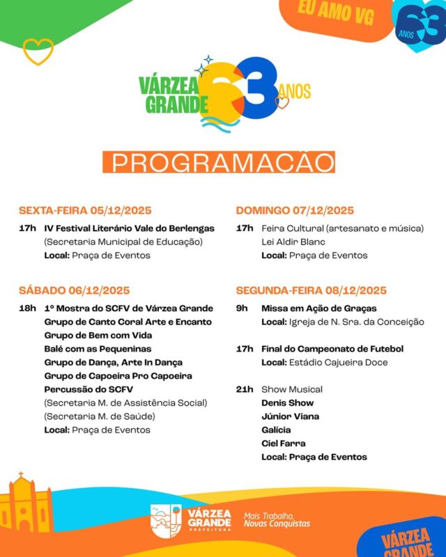 Com uma trajetória recente marcada por investimentos estruturantes e avanços visíveis, Várzea Grande celebra seu aniversário consolidada como um dos municípios que mais evoluíram na região e pronta para seguir crescendo.