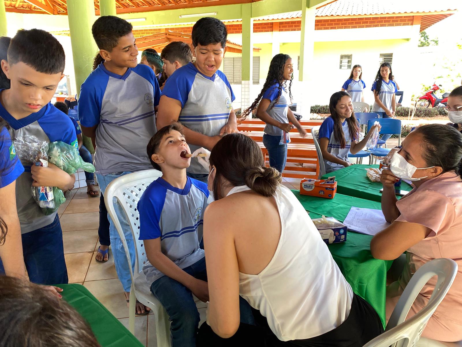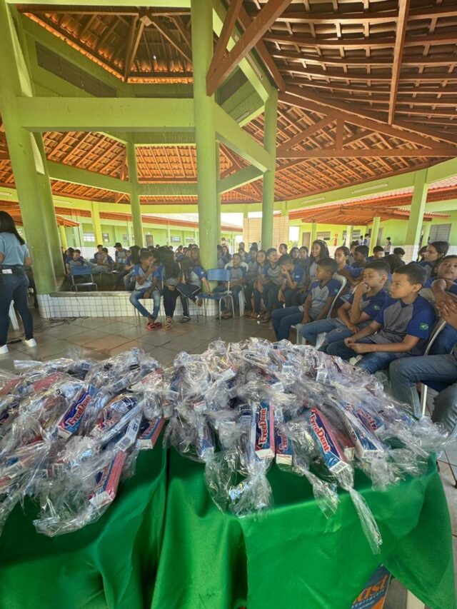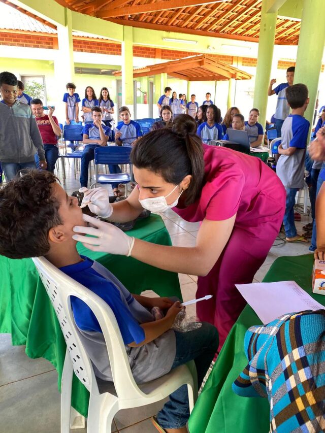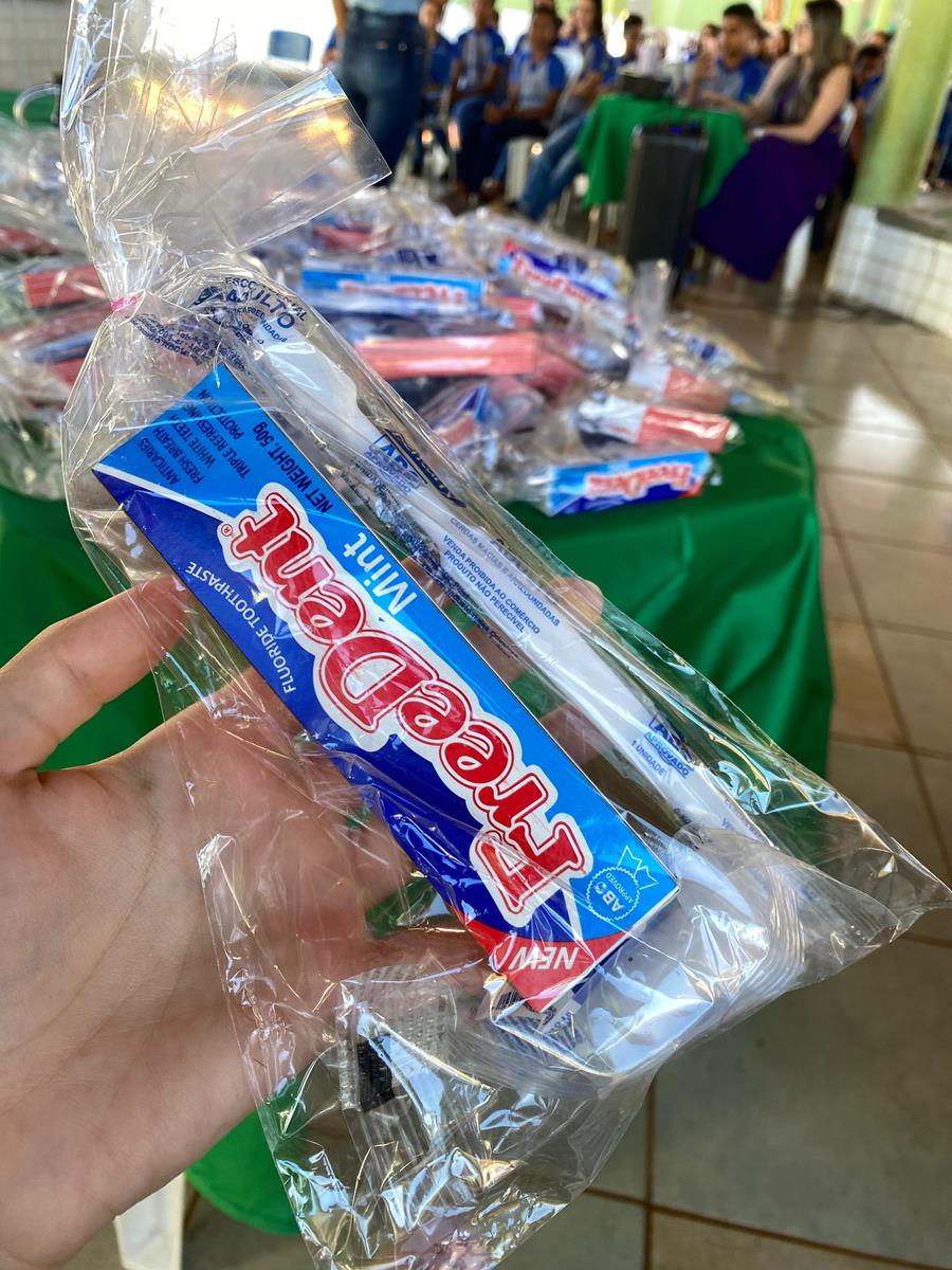 Durante o evento teve a entrega de kit higiênico de saúde bucal para todos os alunos palestra, avaliações, aplicação de flúor e outras atividades.
