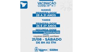 A campanha de vacinação contra a Covid-19 terá uma nova rodada em Valença com a imunização de pessoas com síndrome de down, gravidas e puérperas (mulher que acabou de dar à luz), atendentes de farmácia e pessoas de 55 a 59 anos com deficiência permanente ou comorbidades.
