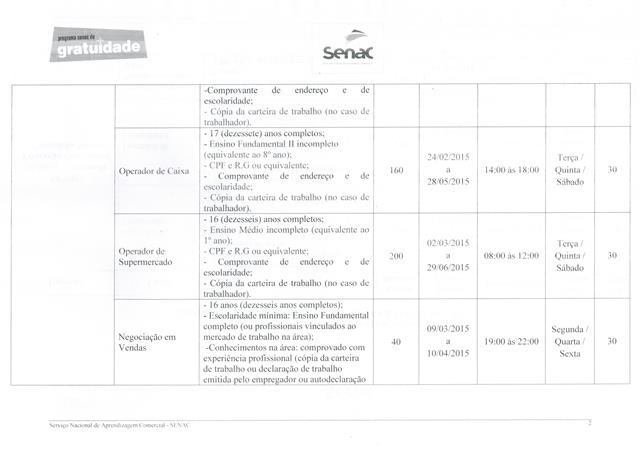 Estão abertas as inscrições para 213 vagas do Processo Seletivo nº06/2015 do Programa SENAC de Gratuidade (PSG), as inscrições estarão abertas ate o dia 30/01/2015 e devem ser feitas na unidade do SENAC Valença. Neste ano, a grande novidade é que o beneficiário do PSG poderá matricular-se e frequentar concomitantemente até dois cursos desde que haja compatibilidade entre períodos e horários.
