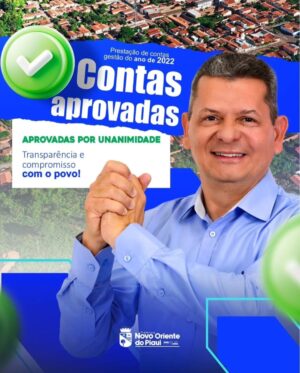 O prefeito de Novo Oriente, Afonso Sobreira, comemorou a aprovação das contas da prefeitura municipal pelo Tribunal de Contas do Estado de Piauí, referentes ao exercício financeiro do ano de 2021, primeiro ano de sua gestão.