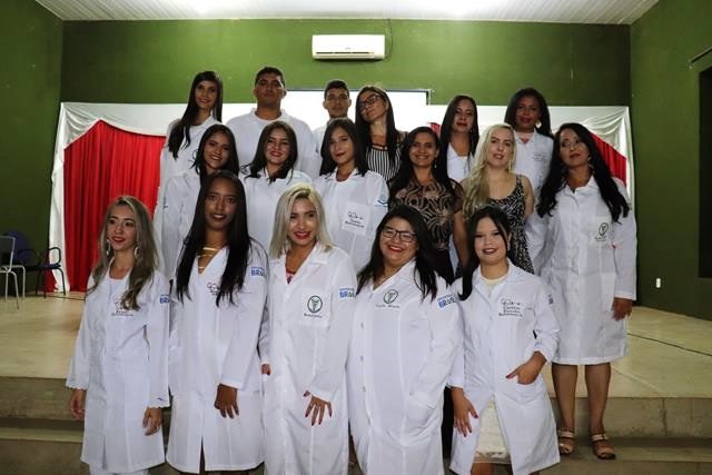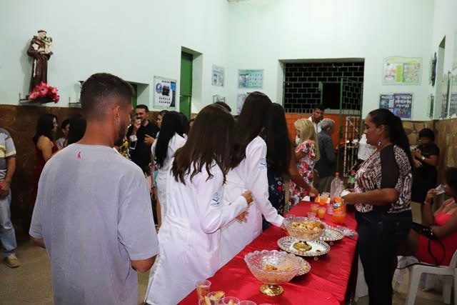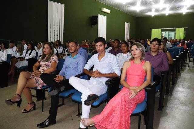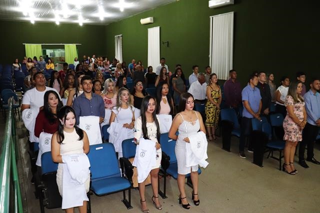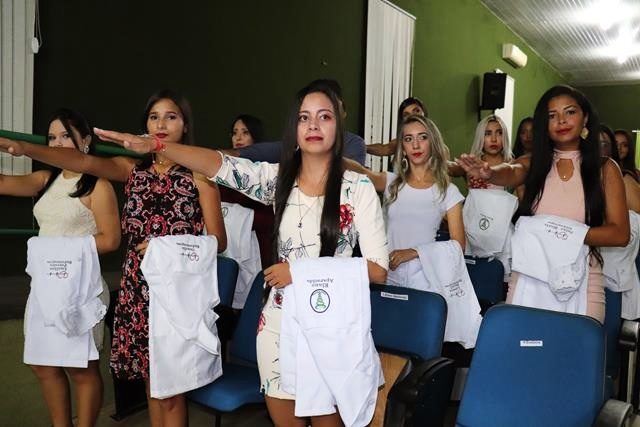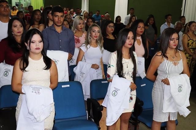 A mesa solene foi composta pela diretora administrativa Mauricelia Sousa, secretário Jailton Sousa e pela coordenadora da área de saúde Suzy Ariane. Após a formação da mesa, o cerimonial tão bem conduzido pela cerimonialista Iza Santos convidou os acadêmicos acompanhados pelos padrinhos para receberem e prestar o juramento.