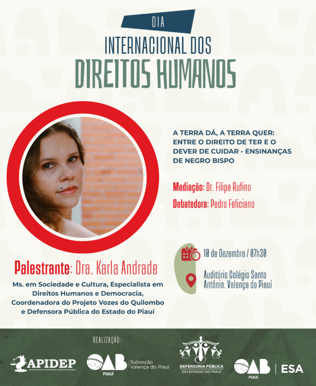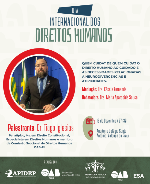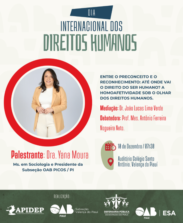 No dia 10 de dezembro, o mundo celebra o Dia Internacional dos Direitos Humanos, uma data que reforça princípios fundamentais como dignidade, igualdade e justiça. Em Valença do Piauí, a ocasião será marcada por um importante momento de diálogo e conscientização.