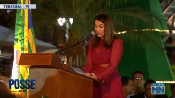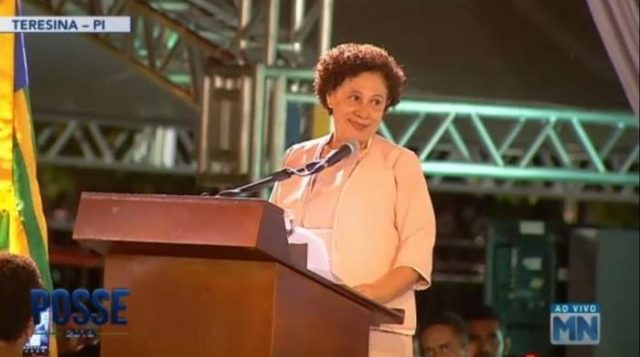 A vice-governadora Regina Sousa (PT) discursou na solenidade no Palácio do Karnak e, antes de falar, um trompetista interpretou os jingles de campanhas eleitorais do ex-presidente Luiz Inácio Lula da Silva e o PT, que foi seguido pelas 2 mil pessoas que estavam no jardim do palácio.