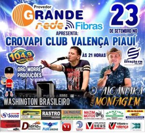 Dia 23 de setembro, a cidade de Valença receberá novamente o show do cantor Washington Brasileiro. A festa será no Crovapi Clube e a promessa é de grande show. D´Alcântara e Forró Montagem abrirá a festa que deve movimentar toda a região valenciana.